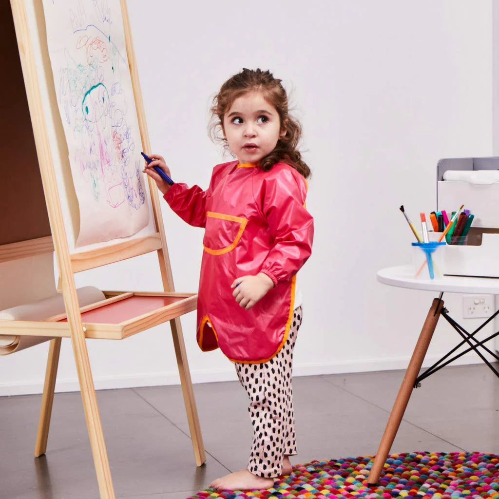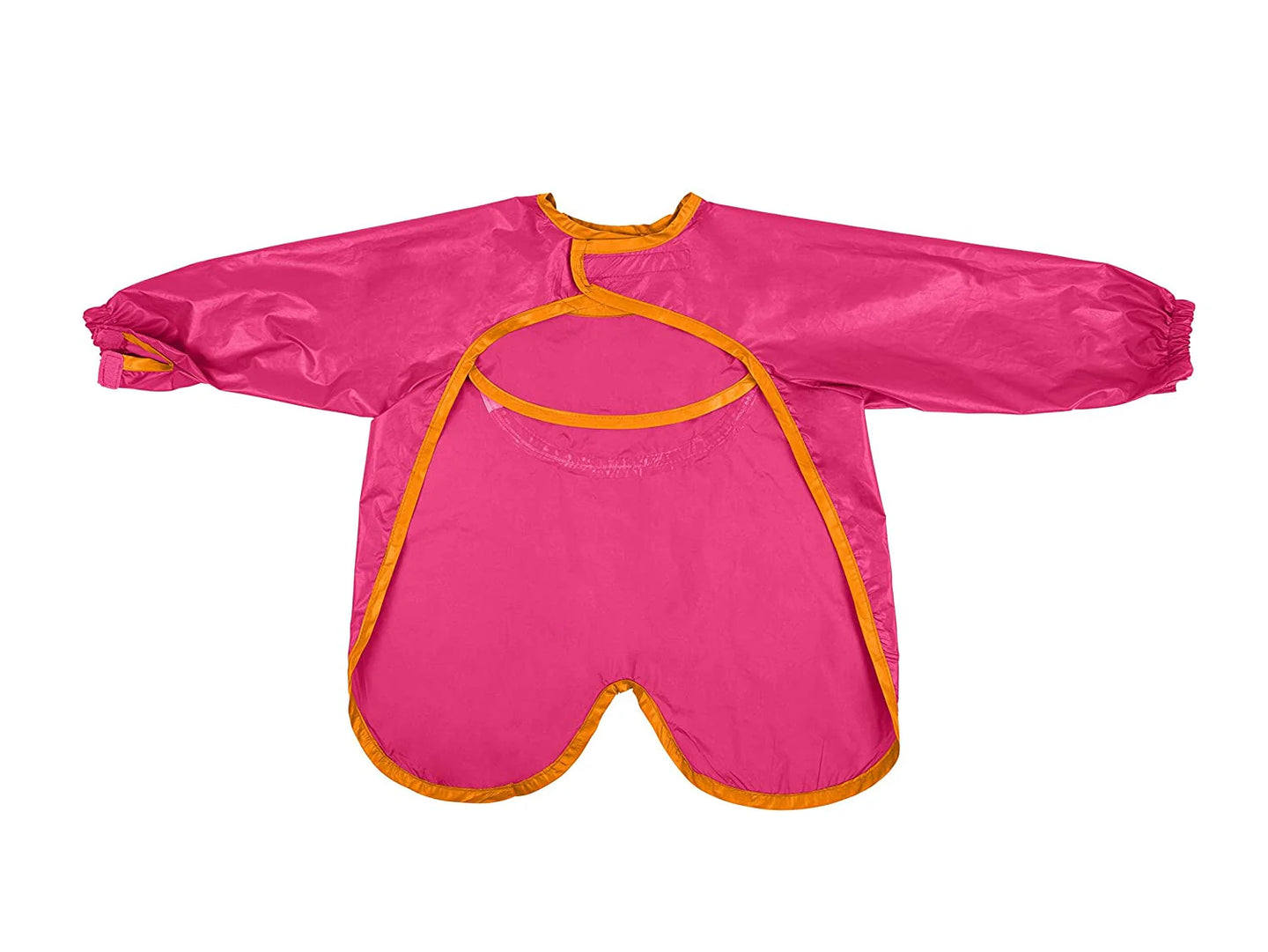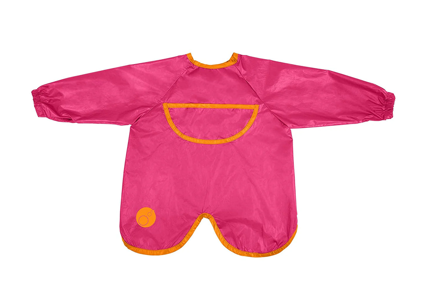 Mealtime is messy, but kids’ clothes don’t have to be. Smock bib has mealtimes covered, at home or on the go! Unique waterproof design covers all over, including legs when seated. Handy food catcher pocket captures the mess before it hits the ground.  Conveniently tucks away into its own pouch, for storage and travel. Adjustable neckline and wrist provide the perfect fit. Also, great as an art smock! BPA, Phthalates and PVC free.