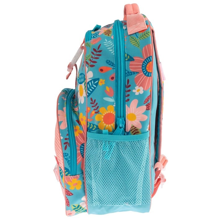 Fun and functional, kids will be “all over” the Stephen Joseph All Over Print Backpack. Perfectly sized for school age kids, these bags are large enough to carry your children’s school books and required day-to-day school supplies and still leave room for a change of clothes for playtime after class. All Over Print Backpacks are durable enough that they also make for a great summer camp or sports bag. This backpack has many of the same features found on adult size bags– three storage compartments, padded and adjustable shoulder straps for comfort, double sided mesh water bottle pockets, two outside hook-on straps, and an inside elastic pocket with name tag. Be sure to gear up with the matching Stephen Joseph All Over Print Lunchboxes. Want to make it even more individual? Then why not personalize it with your child’s initials or name?