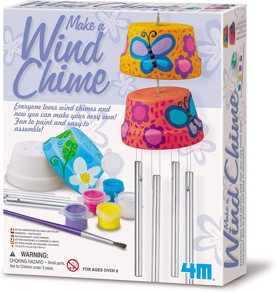 Allow your kids to make A Wind Chime Kit that combines the science of wind power with arts and crafts materials to create and personalize a pair of beautiful wind chimes.
