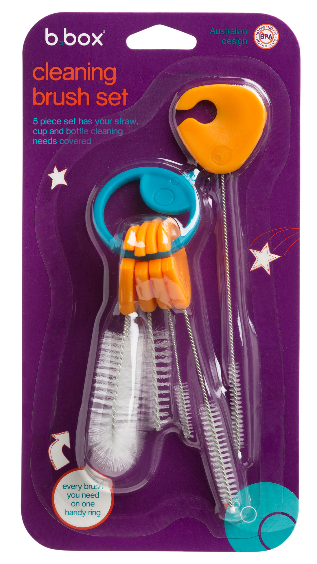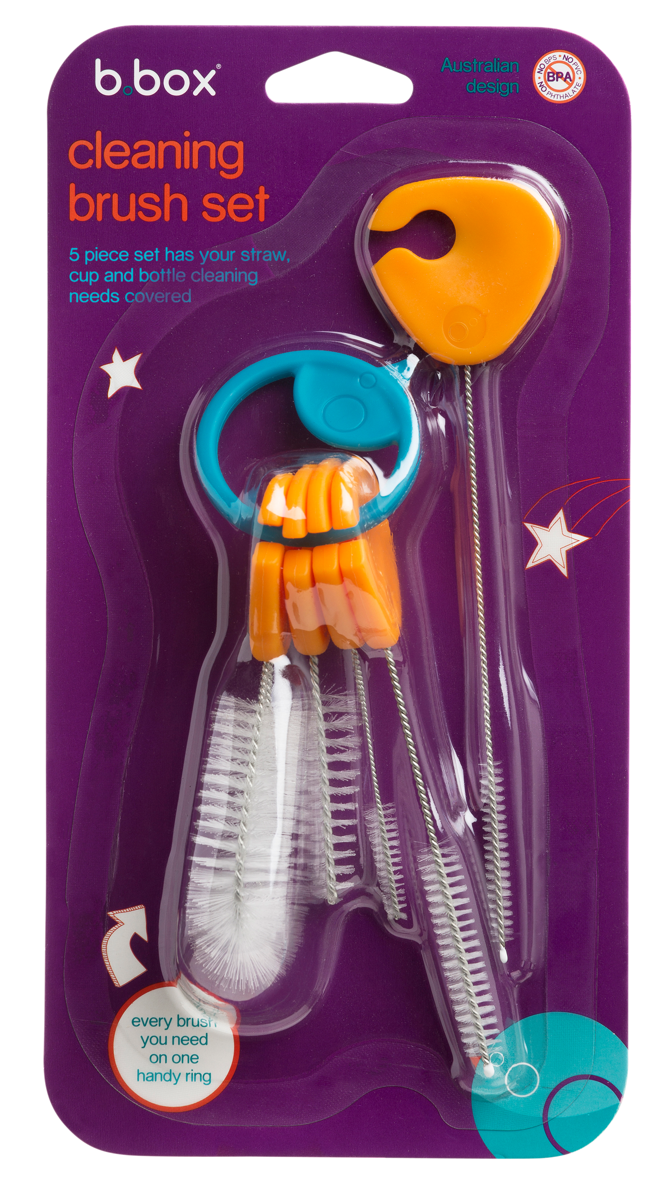 This set contains every cleaning brush you need to hygienically clean sippy cups, drink bottles, straws and other hard to reach places, all on one handy ring. Brushes clip in and out of the handy ring.