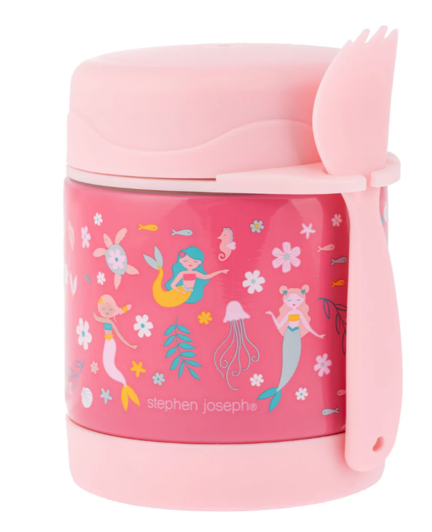 - Coordinating spork attached to food jar, eliminating the need for disposable cutlery.
