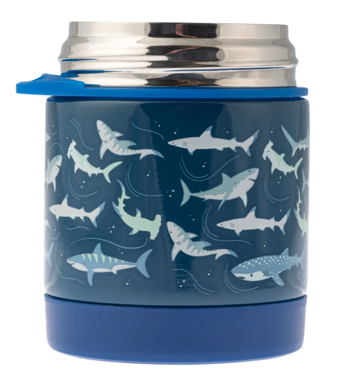 - Coordinating spork attached to food jar, eliminating the need for disposable cutlery.