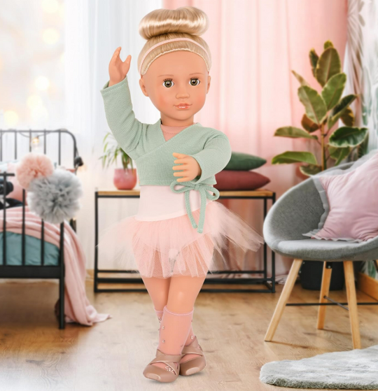 No reviews18-inch ballet doll with long blonde hair and green eyes that open and close Includes: doll, shrug, leotard with tulle skirt, headband, socks, and ballet shoes Compatible with most 18-inch dolls (including American Girl and Journey...Regular price LE 2,599.00 -