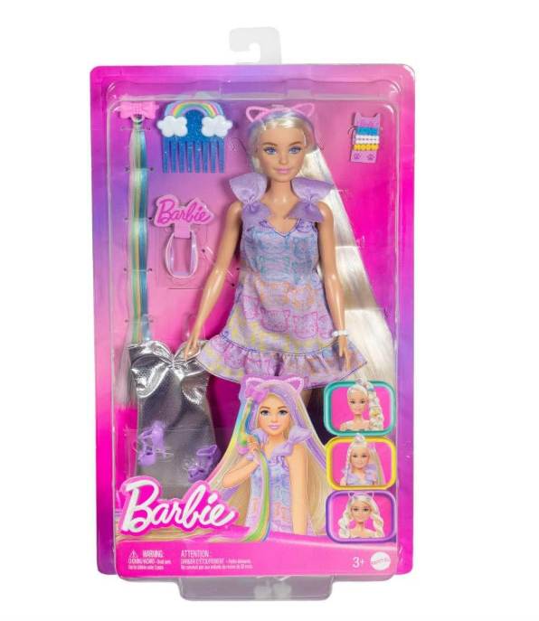 The Barbie Fun & Fancy collection features cute dolls modeling colorful hairstyles and glam looks! Each doll has 8.5 inches of extra-long playable hair and includes 10 total fashion and styling accessories. Kids will love creating different hairstyles and exploring outfit possibilities! Each sold separately, subject to availability. Dolls cannot stand alone. Colors and decorations may vary.