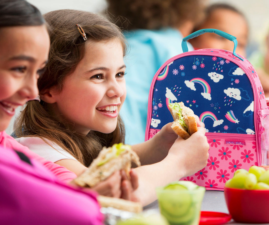 Kids will be “all over” the Stephen Joseph All Over Print Lunchbox Rainbow. Perfectly sized for school age kids, these fun and functional lunchboxes are not only well designed but durable. Large enough to carry your children’s lunch and snack needs for school or even a day trip or picnic. The All Over Print Lunchbox features a spacious insulated interior compartment, an outside storage pocket– perfect for mealtime accessories like utensils and napkins, an interior elastic and mesh pocket, and an exterior mesh water bottle holder. Be sure to gear up with the matching Stephen Joseph All Over Print Backpacks. Want to make it even more individual? Then why not personalize it with your child’s initials or name?