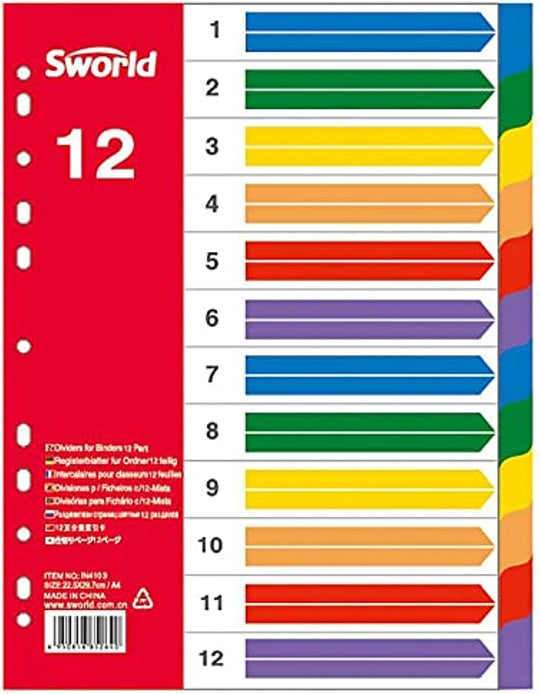 No reviewsType : Filing Products Brand : Sworld Pack of 12 Numbered Plastic Dividers Assorted Colours Made in ChinaSale price LE 27.00Regular price LE 30.00 -
