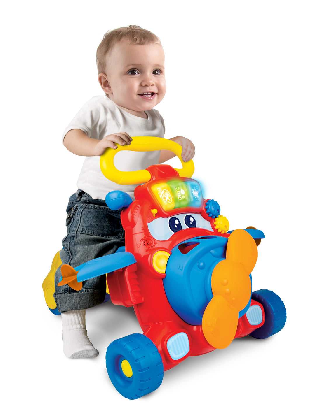 • Light-up buttons, spinning gears, sliding gear stick and rotating propellers