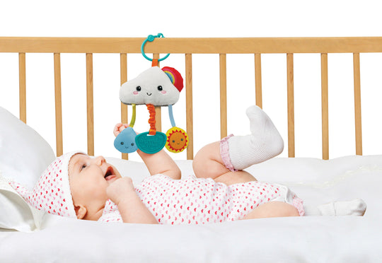 Sale -10%          Vendor: winfun Day Night Cloud Pal Take-along cloud activity toy Squeaker, retractile teether with vibration, and a chime bell for rattle fun Plastic ring easily attaches to stroller or car seat for take-along funSale price LE 449.10Regular price LE 499.00