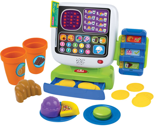 Sale -10%            Vendor: winfun Smart Cafe Cash Register Set Cash register features smart ordering system, a pop-out register drawer, interactive buttons, coins, and credit card slider LED screen displays letters, numbers and animations Includes cute café treats, cups, plates, and a credit card Fun phrases,...Sale price LE 1,575.00Regular price LE 1,750.00