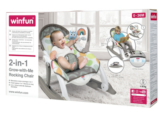 Vendor: Winfun 2-in-1 Grow-with-Me Rocking Chair No reviewsWinfun 2-in-1 Grow-with-Me Rocking Chair, Rocker: Calming vibrations and gentle rocking motion help comfort and soothe baby, plus soft hanging toys to encourage reaching and grasping Stationary mode: Flip out kickstands to go from rocker mode...Regular price LE 4,990.00